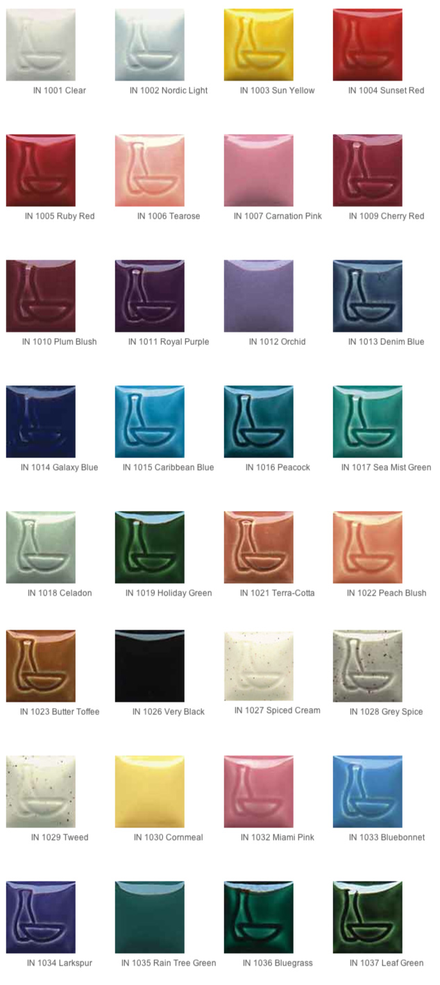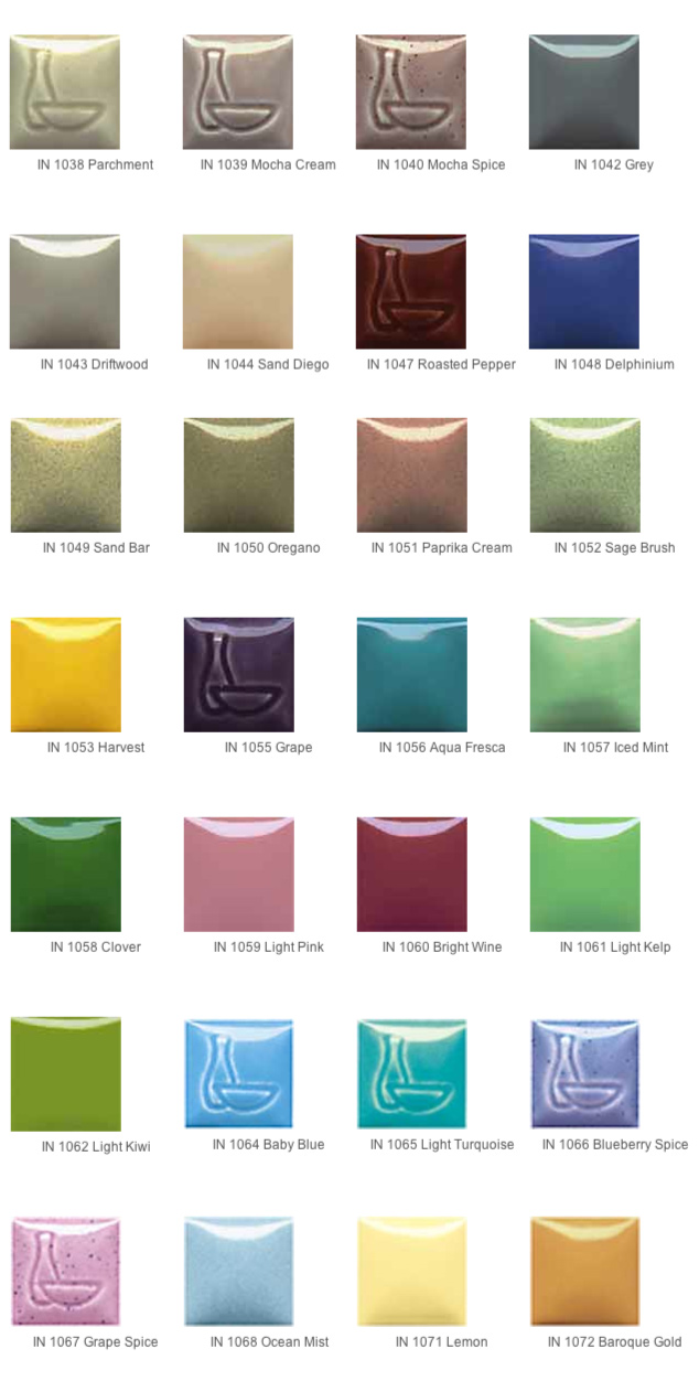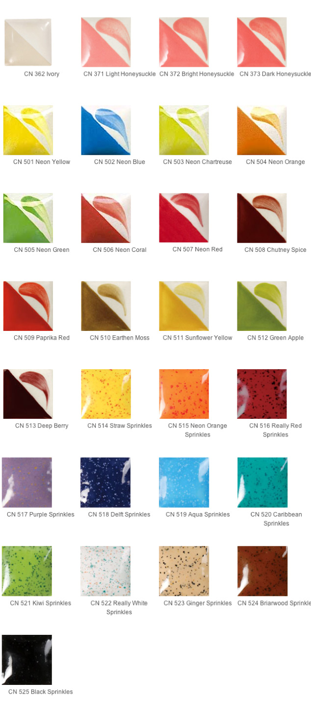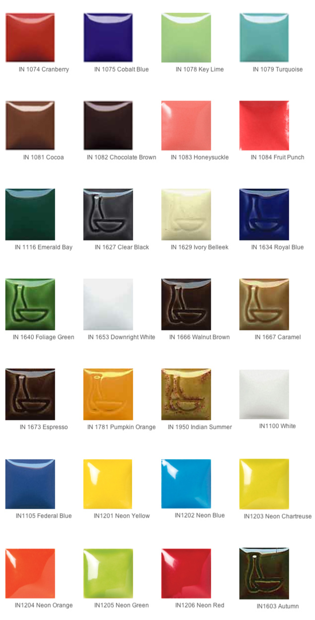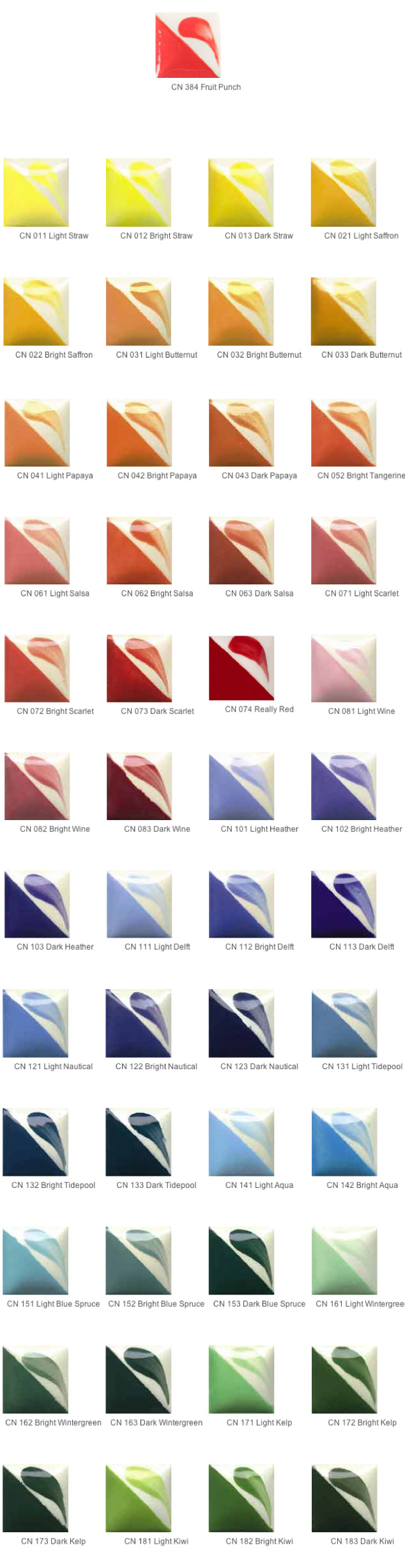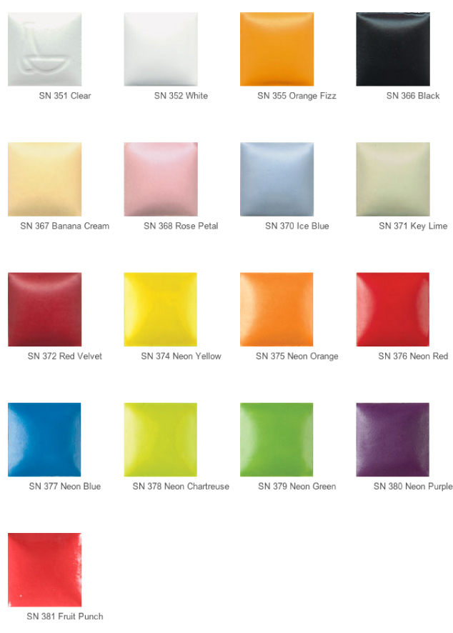 Sus intensos pigmentos permiten la mayor definición y decoración de sus piezas. Los colores están disponibles en botellas de 1 onza y también en pintas.