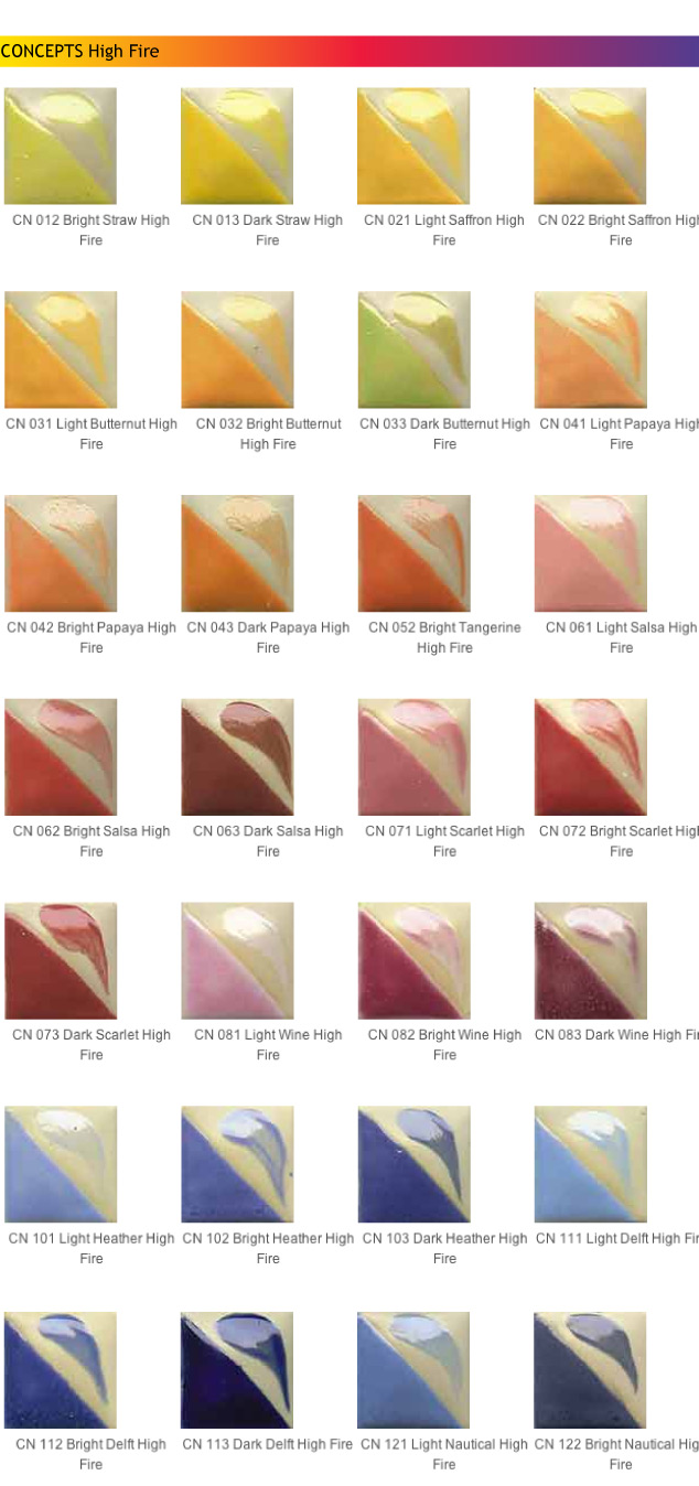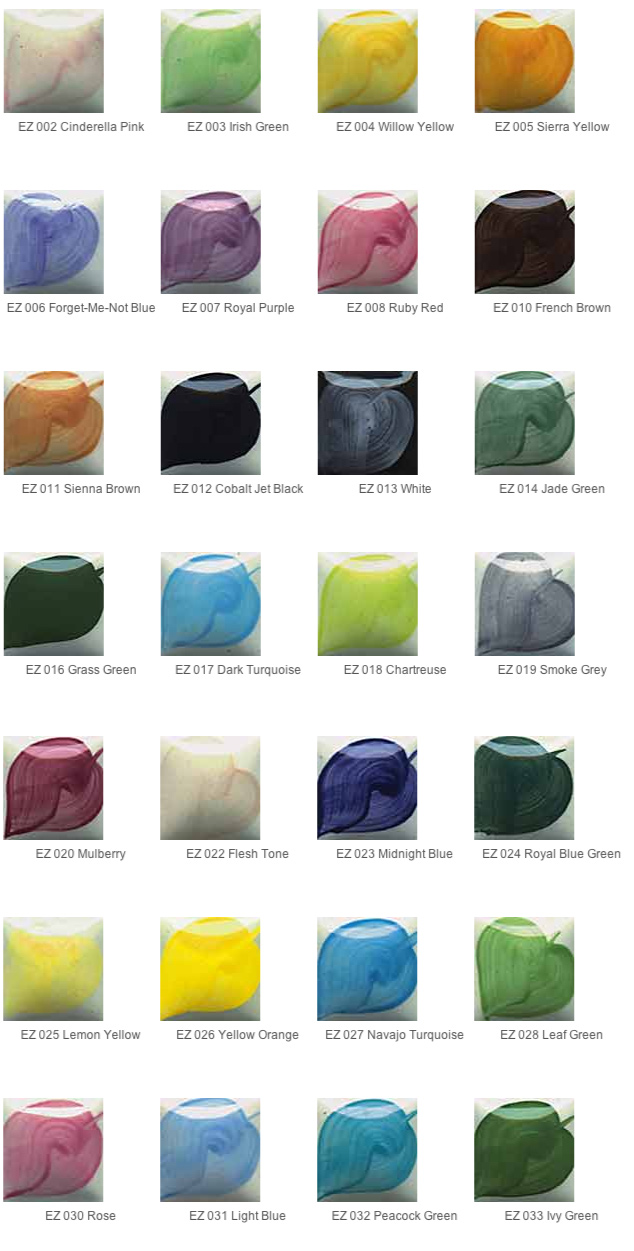 Los EZ-Strokes trabajan bien con altas temperaturas, cono 5-6 y algunos hasta cono 10. Como los resultados pueden variar, sugerimos hornear una pieza de prueba.