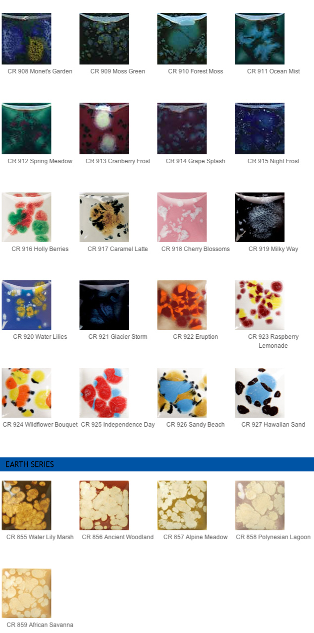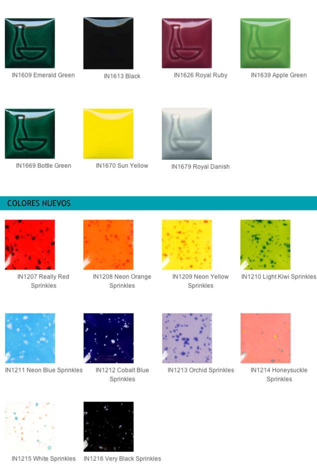Pueden trabajarse en alta y baja temperatura llegando hasta cono 5-6, se recomienda probar la variación de su tonalidad.